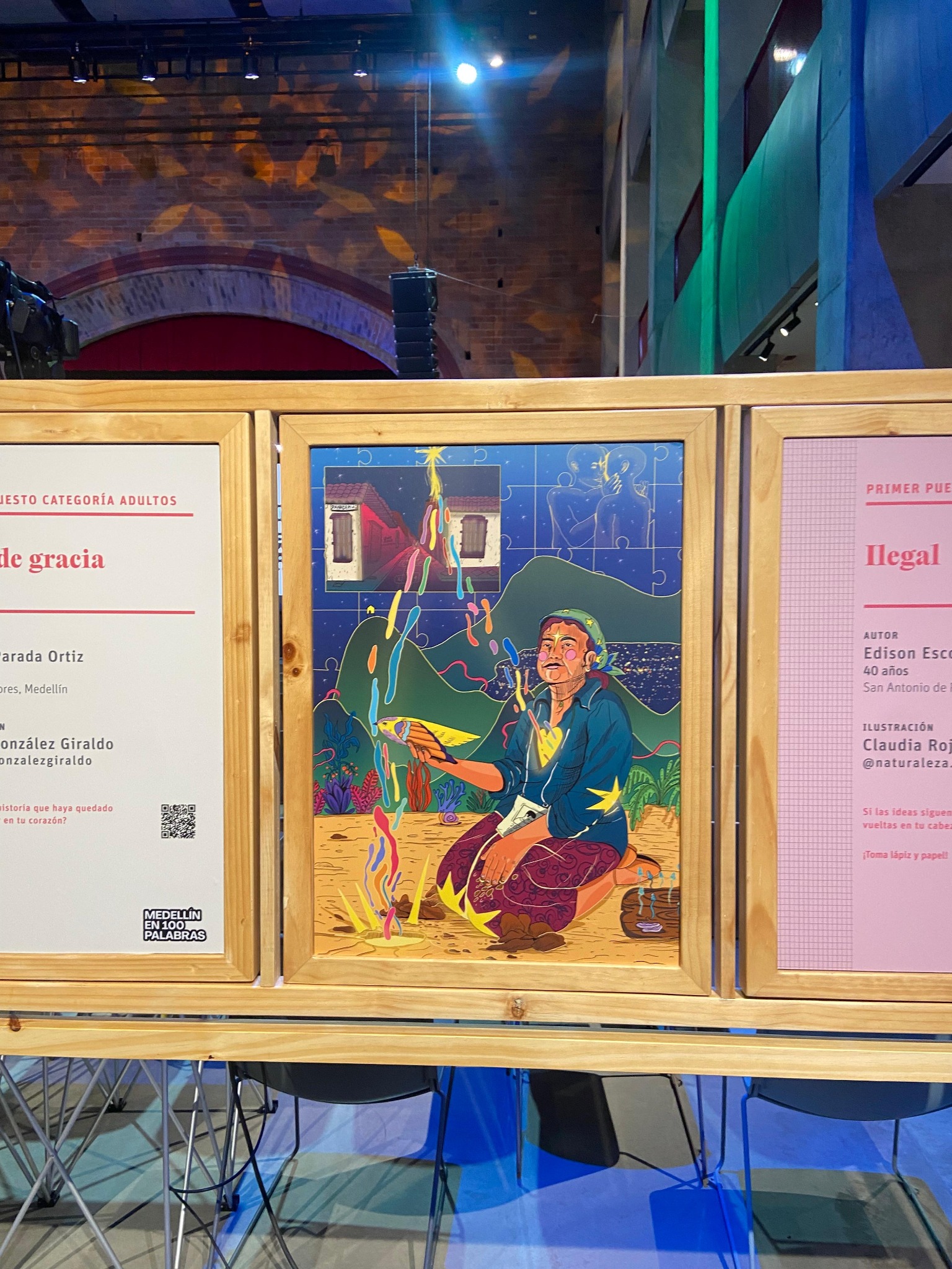 El evento se llevó a cabo en el Claustro de Comfama de San Ignacio, donde las obras fueron exhibidas junto a los relatos que inspiraron cada ilustración.